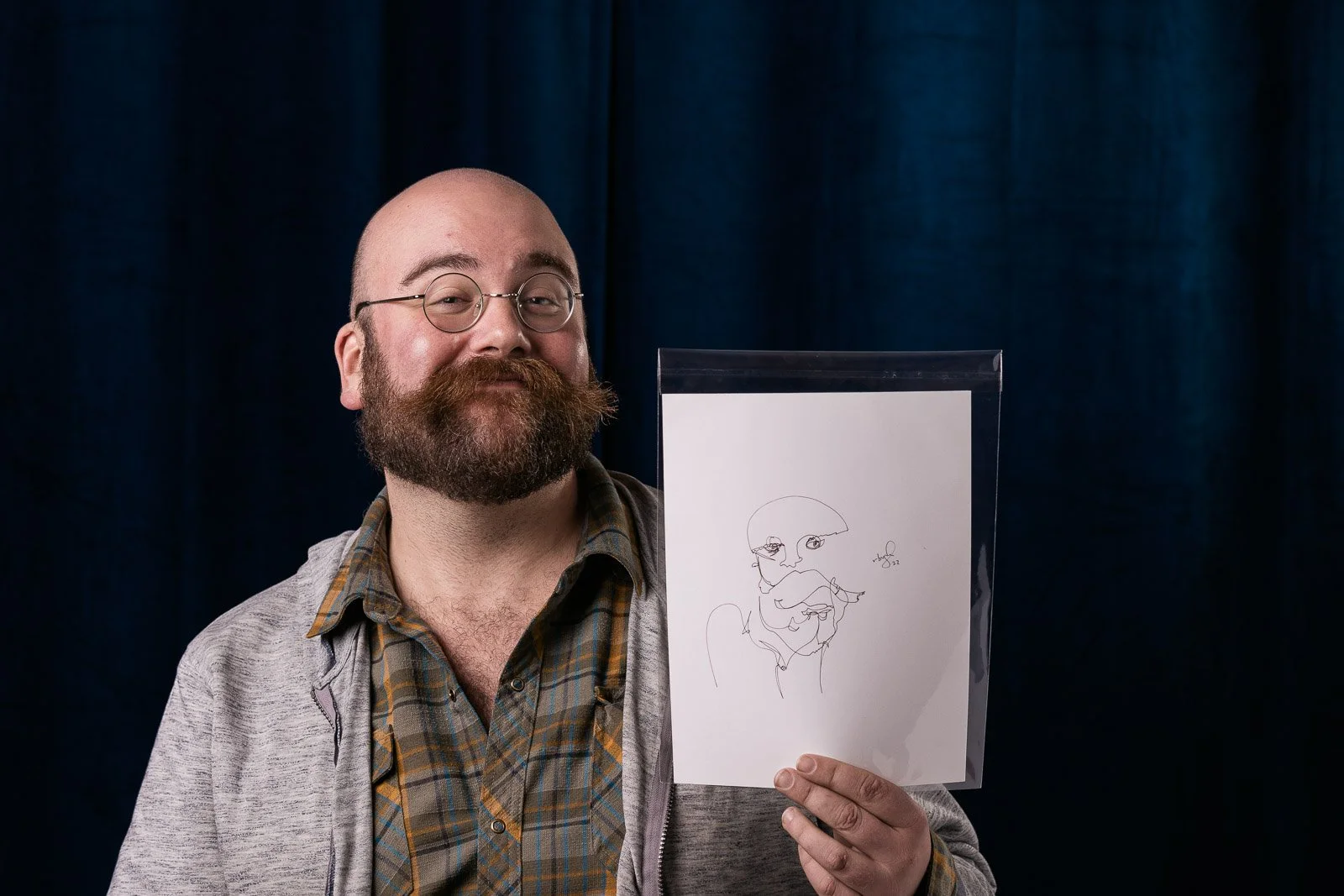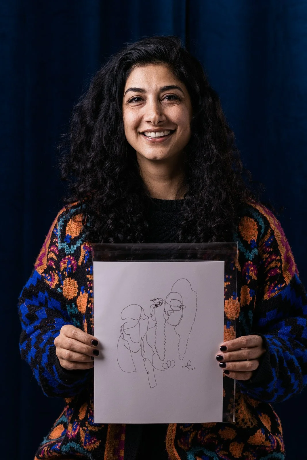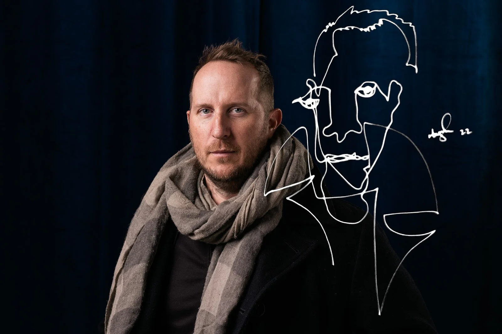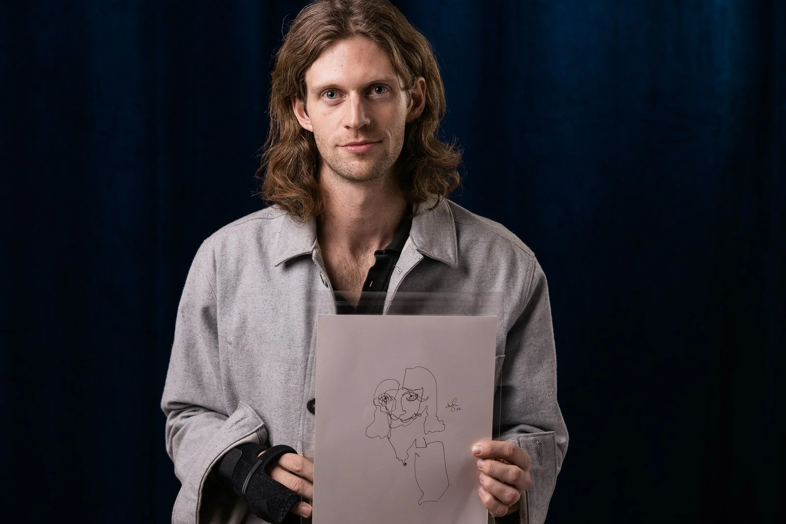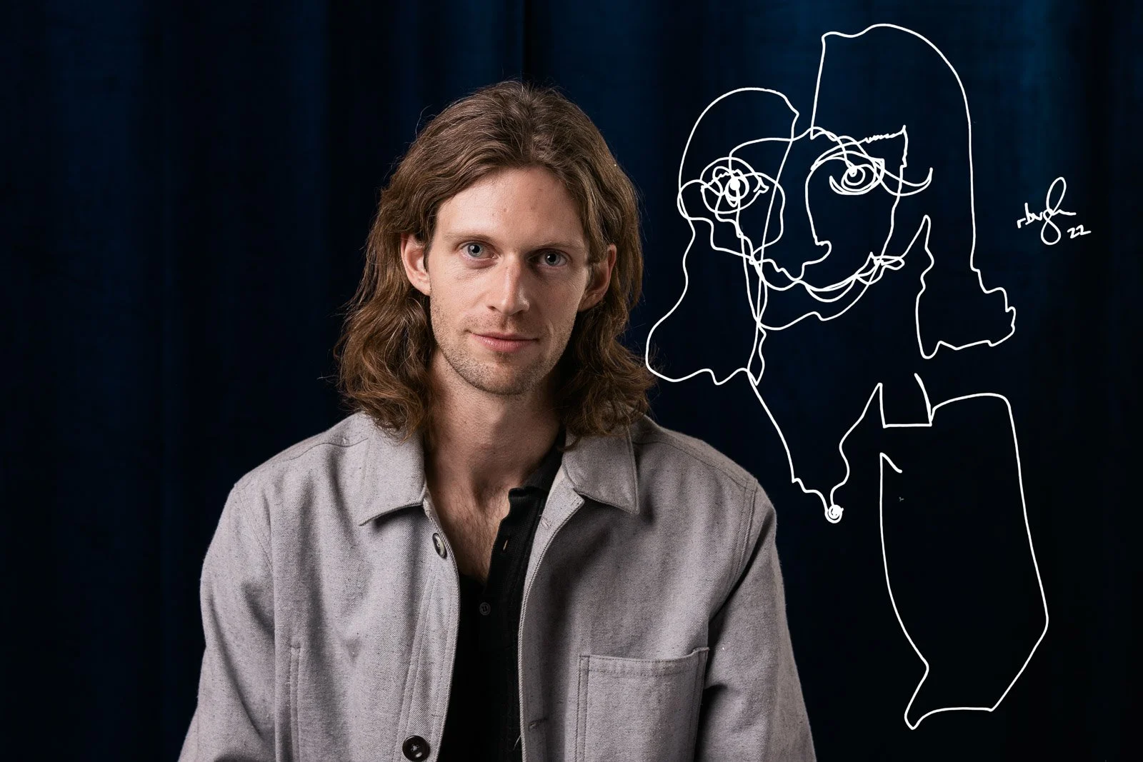 Photographer photographs artists single line portraits.
